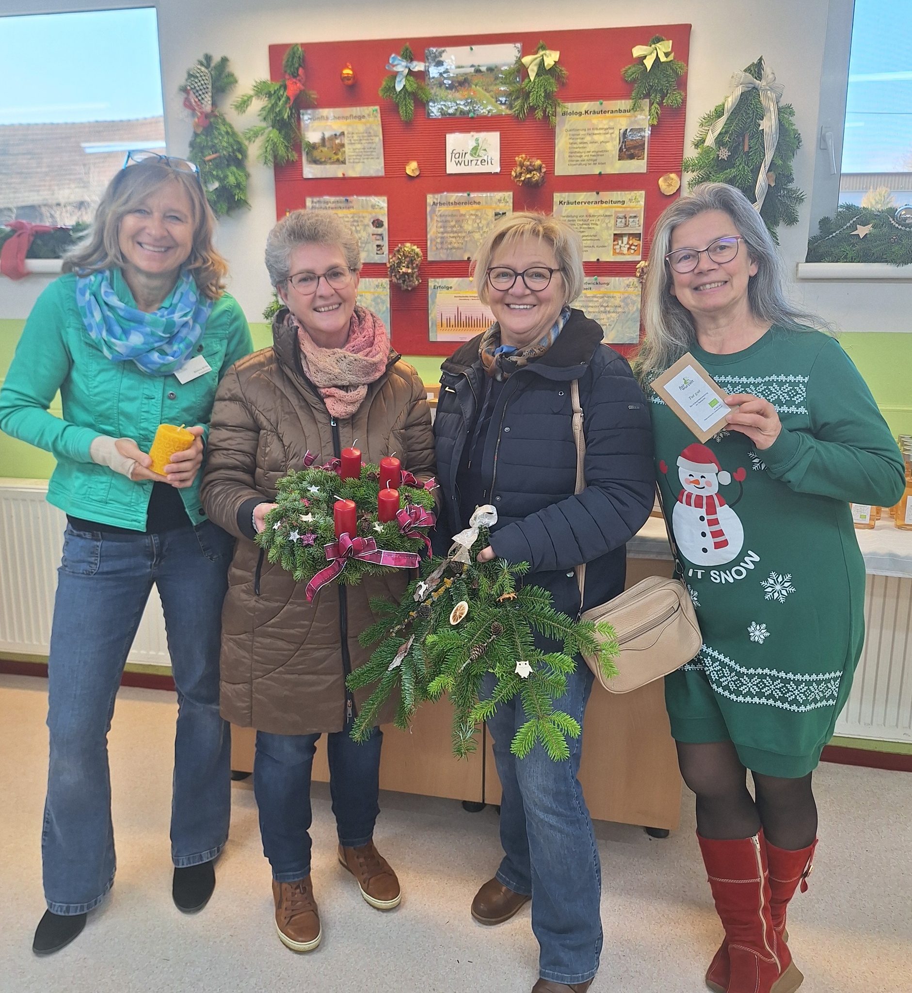 Nach einer konstruktiven Besprechung wurde das Projekt besichtigt. Nachdem die geschickten Hände beim Adventkranz binden gelobt, ein tiefer Atemzug im Kräuter- und Produktlager gemacht wurde, ging es auf einen Rundgang in den Kräutergarten.